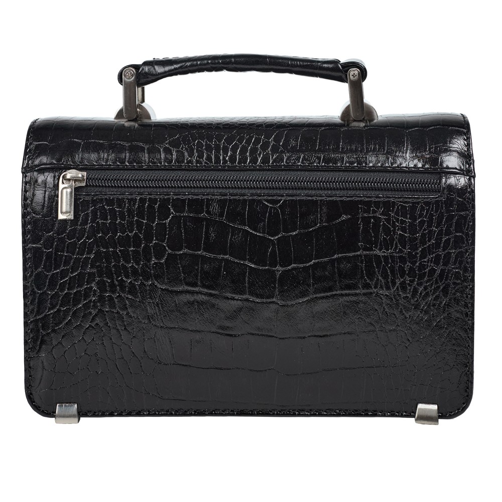 3 основных отделения, 2 перегородки на змейке, под клапаном размещено 3 открытых кармана, брендированная подкладка, металлические ножки, в комплекте короткий кожаный ремешок. Сзади - горизонтальный отсек на молнии
