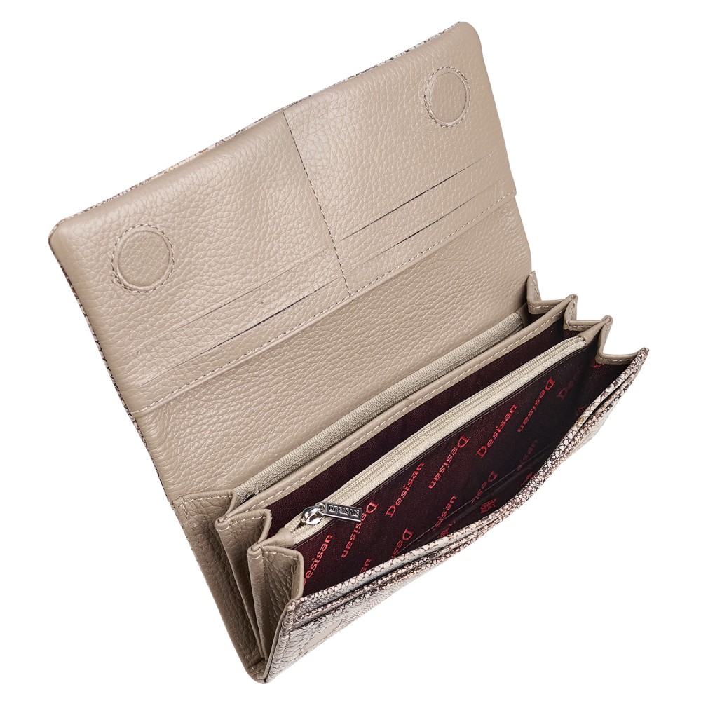Кошелек женский кожаный Desisan 163-200 бежево-золотистая змея