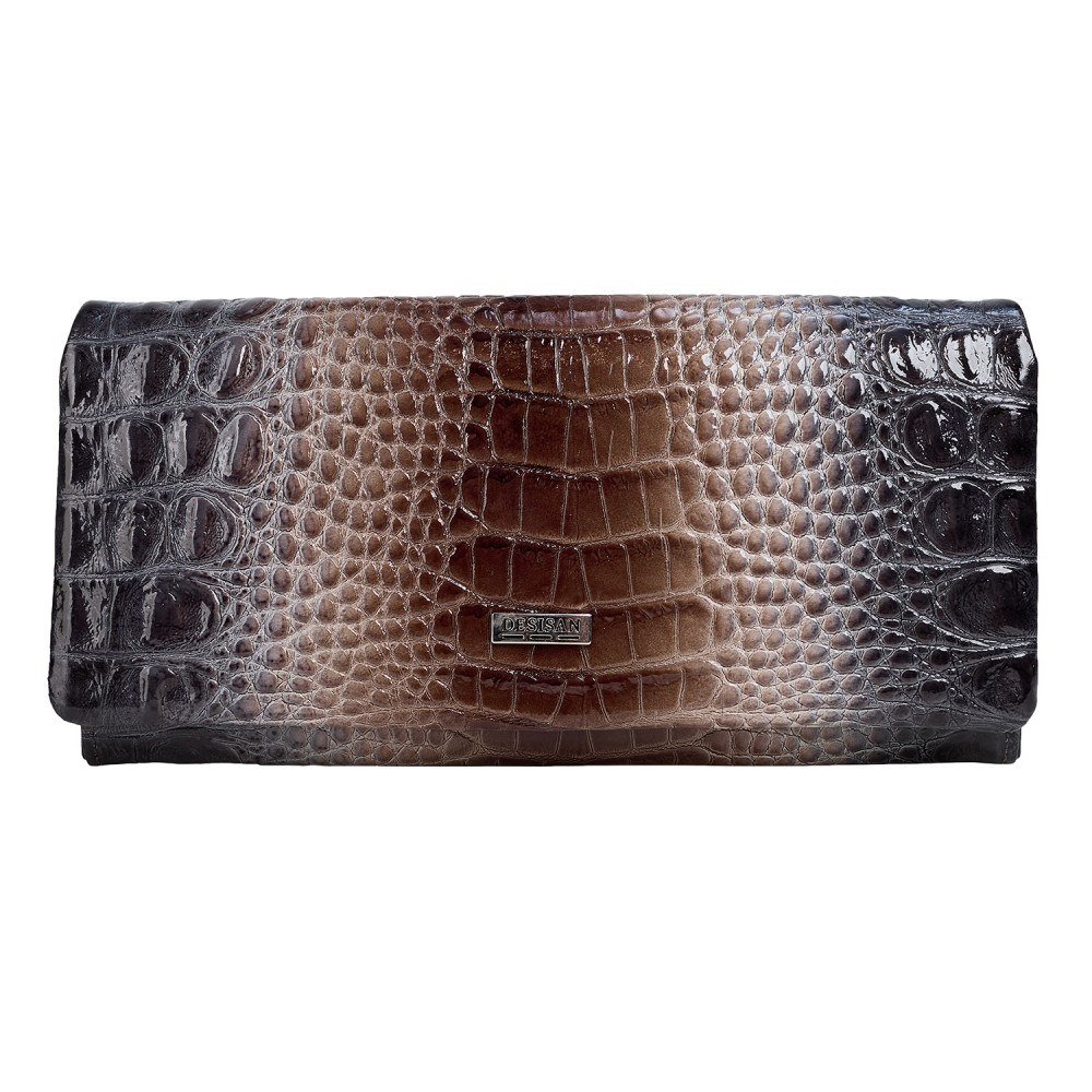 Кошелек женский кожаный Desisan 163-757 серый кроко лак