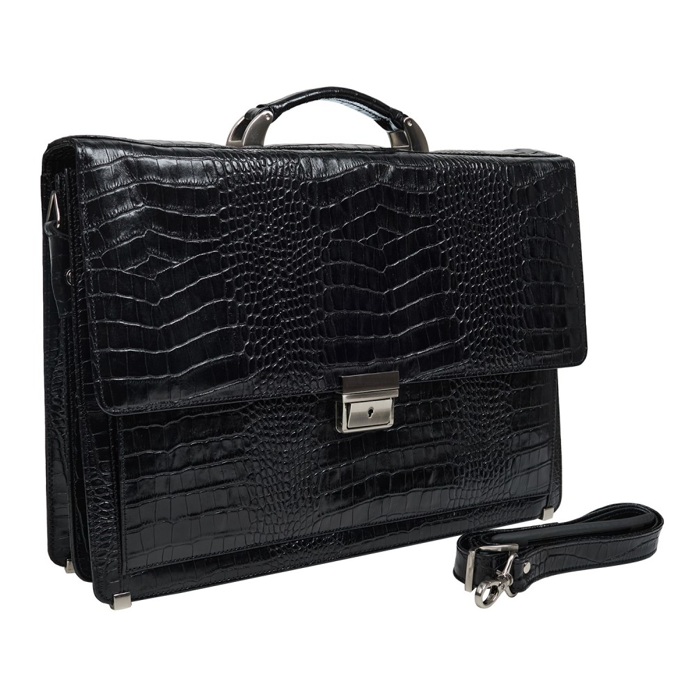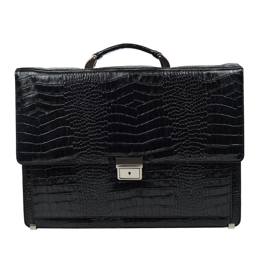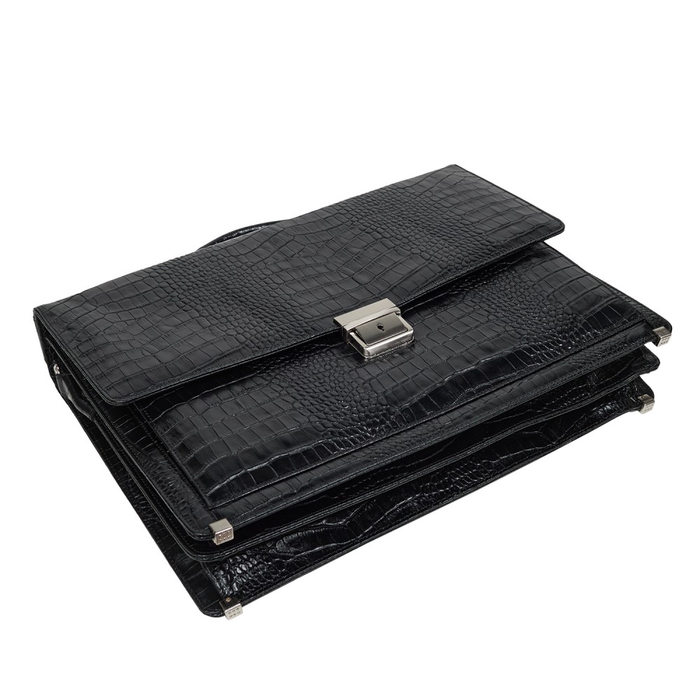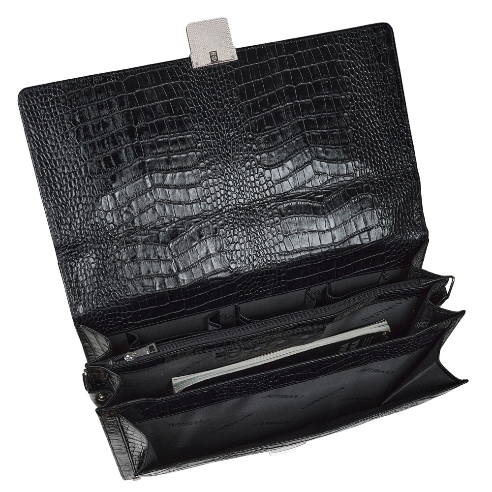 Портфель кожаный CANPEL 3019-202 черный кроко