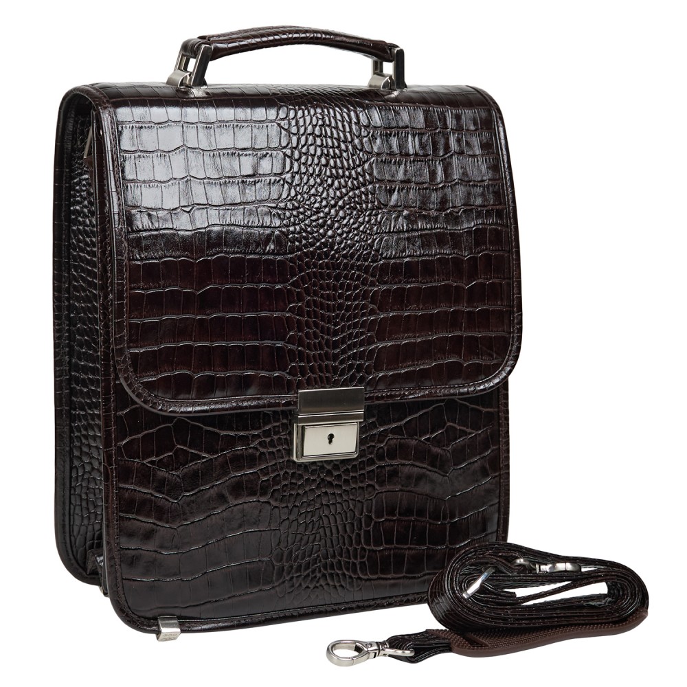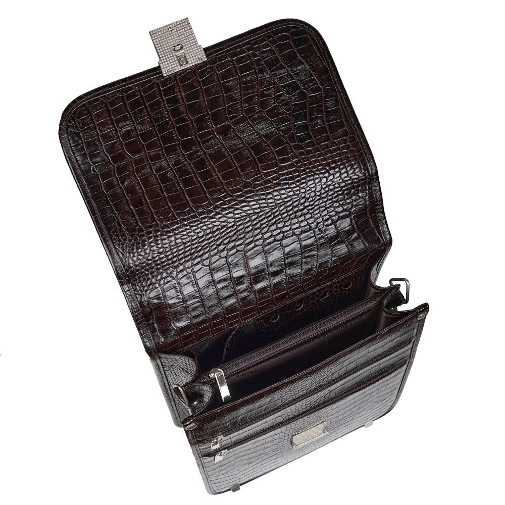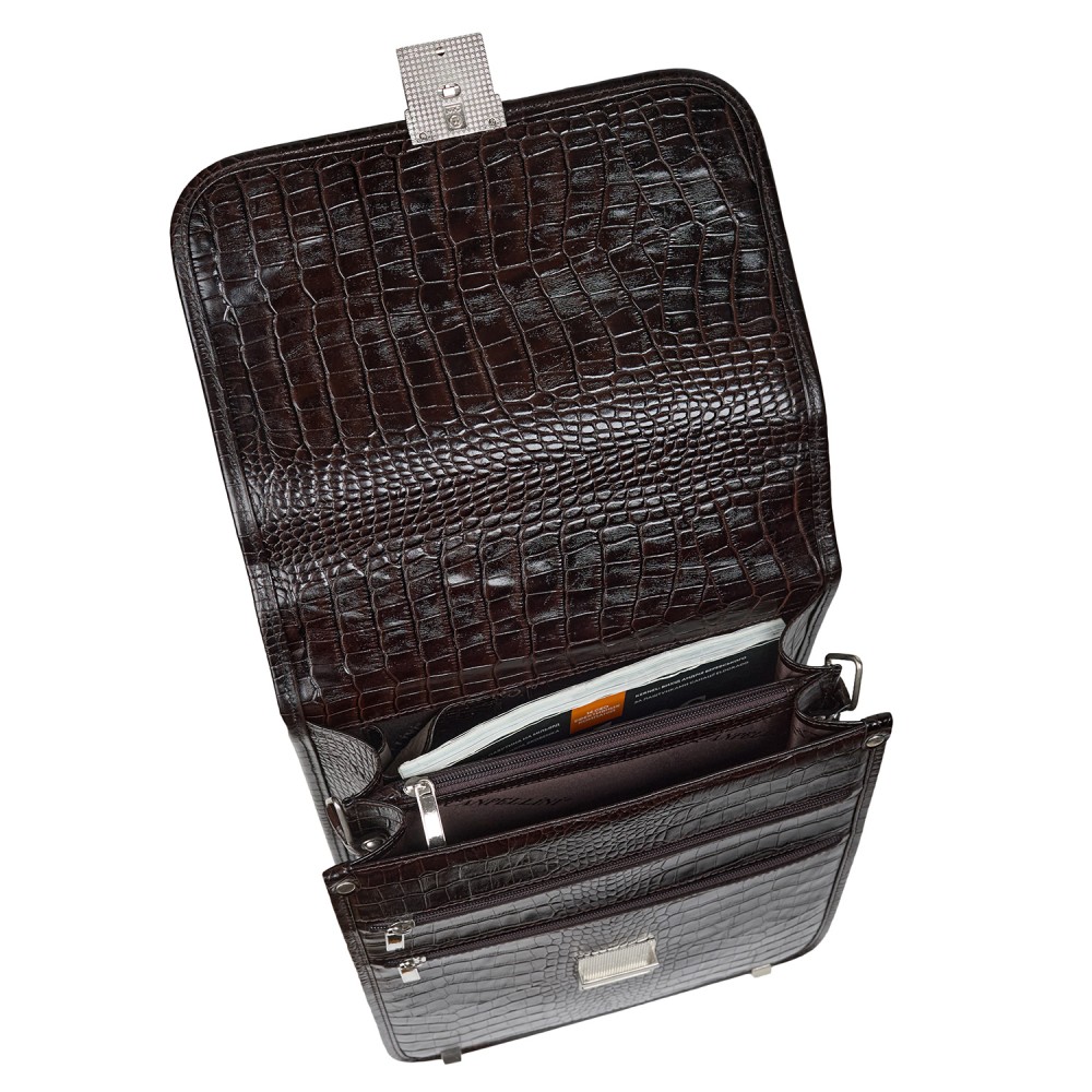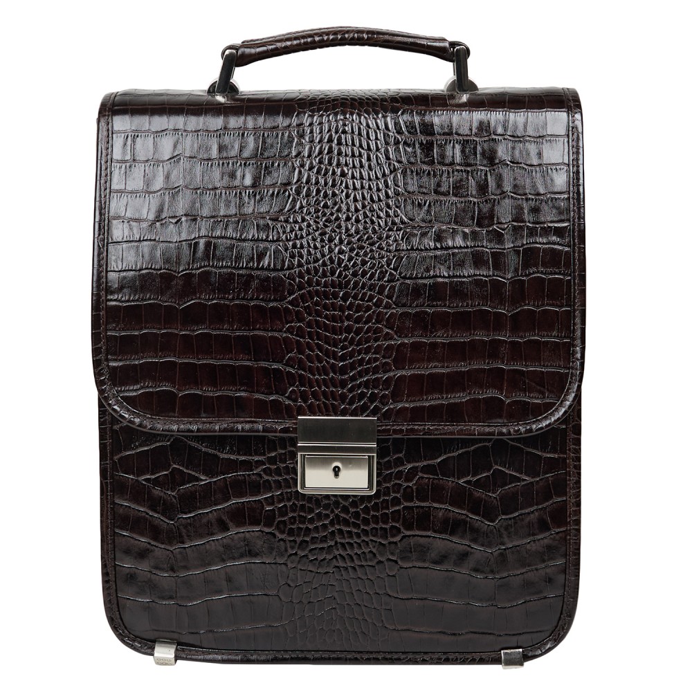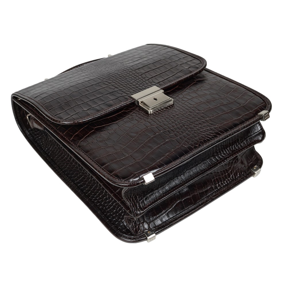 Портфель вертикальный кожаный CANPEL 1585-11 коричневый кроко