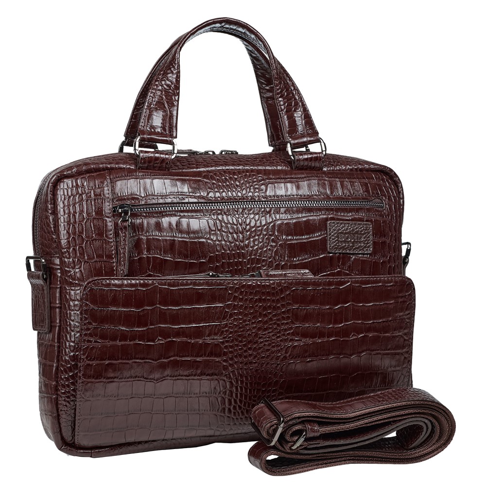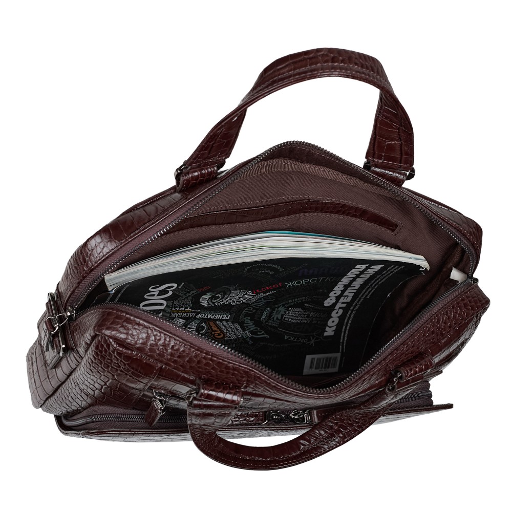 Портфель мягкий кожа BOND 1424-355 коричневый кроко