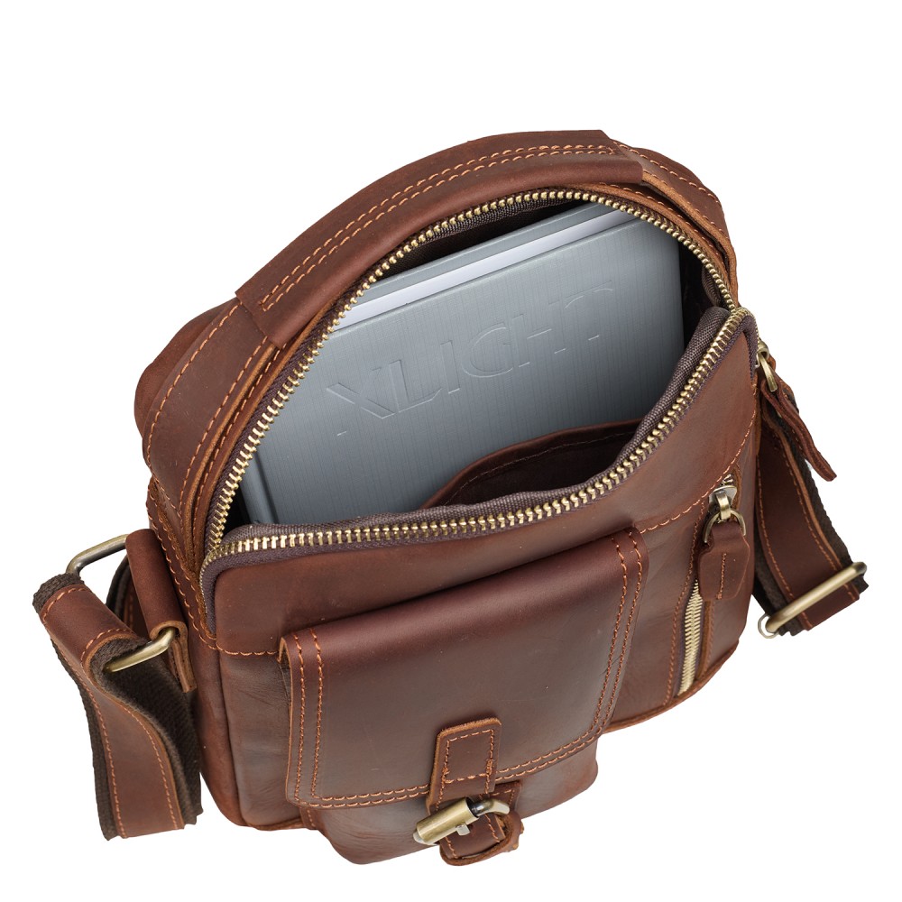 Мужская кожаная сумка через плечо BUFFALO BAGS 6232B коричневый нубук